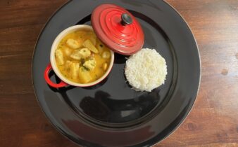 Pour 4 personnes Ingrédients : Préparation : Préparer un bouillon avec le bouillon de poule + le lait de coco + la crème + poivre. Porter à ébullition, laisser réduire… [Continuer la lecture]