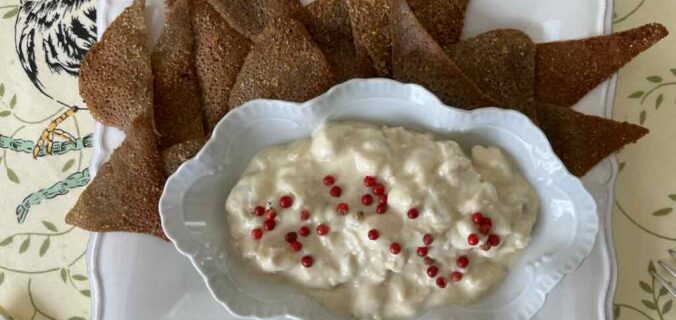 Chips : badigeonner légèrement chaque crêpe avec un peu d’huile. Saupoudrer de semoule d’ail et de sel. Découper chaque crêpe en plusieurs triangles. Les disposer sur une plaque recouverte de papier cuisson et enfourner dans un four préchauffé à 180° pendant environ 15 mn. A surveiller. Pour le service, remplir des petites coupelles de rillettes, les poser au centre des assiettes et les disposer autour les chips de sarrasin.