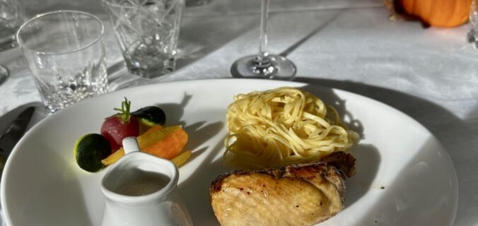 Cuisson des suprêmes : dans une sauteuse, faire fondre 20 g de beurre + 2 cuillères à potage d’huile d’arachide. Y déposer les suprêmes et les faire revenir de chaque côté pendant environ 4-5 mn. Sur chaque assiette, déposer harmonieusement les petits légumes et les suprêmes. La sauce sera servie à part dans de petites cruches ou saucières.