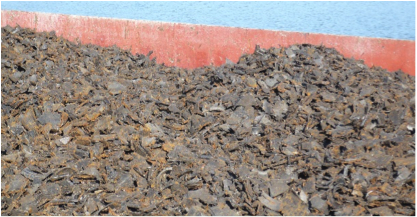 Péniche chargeant des pneus déchiquetés provenant de l’entreprise Gilles Henry (située sur la rive d’en face), en partance pour leur recyclage à Dunkerque (7 j de navigation par les canaux)